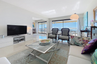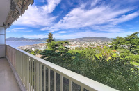 Dans une des plus belles résidences du secteur recherché résidentiel de la Croix-des-Gardes, avec gardien / réception, superbe parc paysager, tennis et très grande piscine, en étage élevé, bel appartement à la vue mer spectaculaire à 180 degrés embrassant toute la baie de Cannes. Hall d'entrée avec penderies, double living avec belle cuisine intégrée ouvrant sur la terrasse à la vue panoramique principale et à l'arrière une vaste chambre avec penderies et salle de bain attenante avec WC, une seconde chambre bureau, une seconde salle d’eau avec WC. Rangements. L'appartement est en parfait état .Une cave et un garage privatif. Parkings visiteurs.