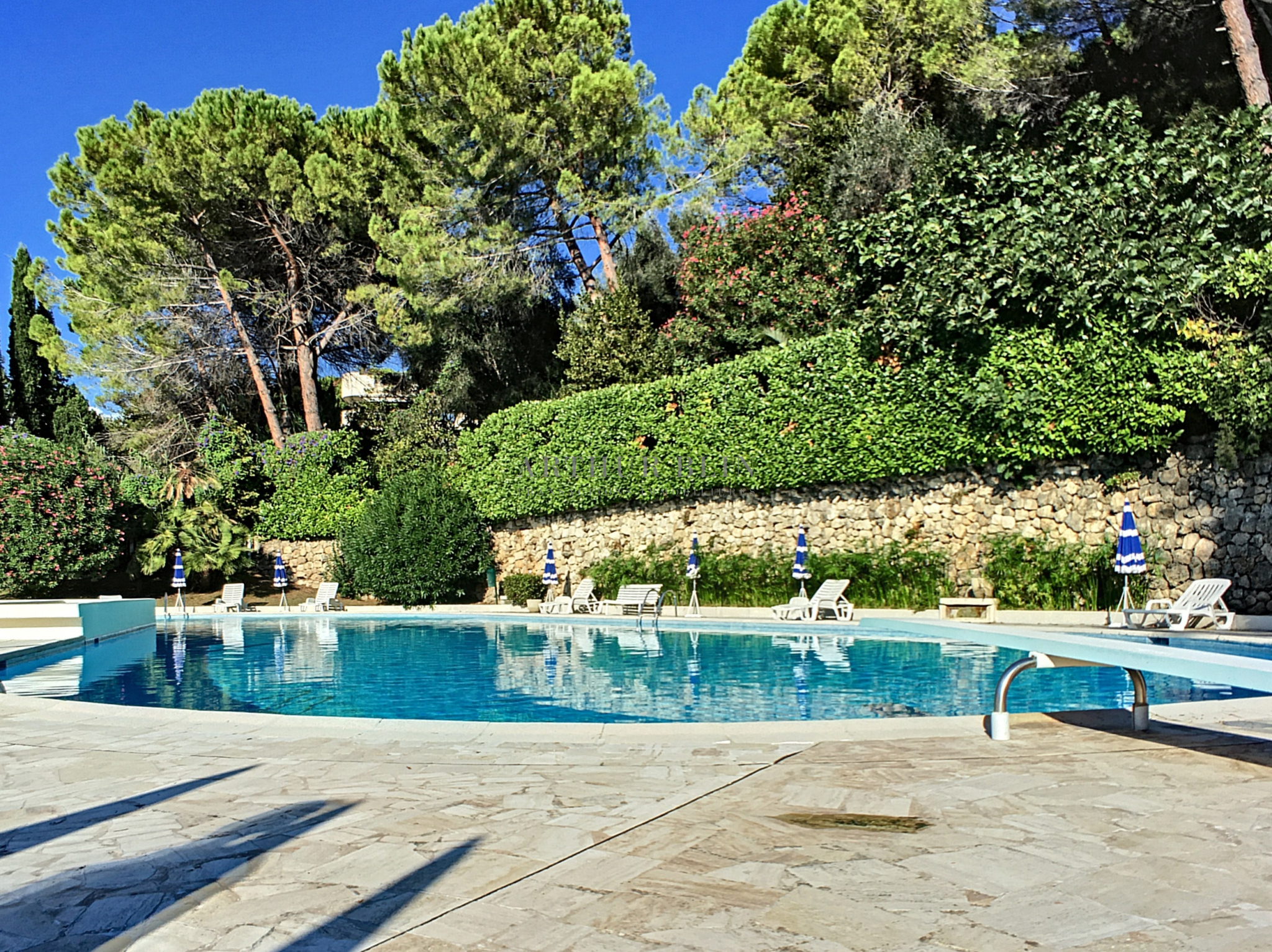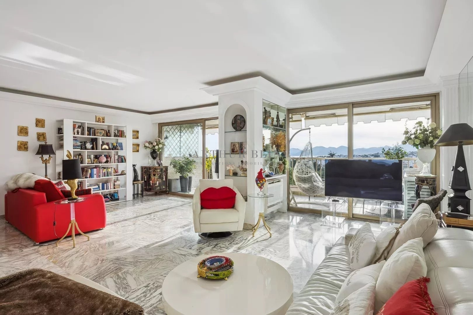 Dans une résidence de standing sécurisée avec réception, parc, tennis et piscine, dans le quartier recherché d'Oxford, vaste appartement traversant aux beaux volumes lumineux. Hall d'entrée, vaste double-living sur profonde terrasse exposée Sud-Ouest avec vue sur la Baie et l'Estérel, 2 belles chambres, 1 salle de bains avec WC et 1 salle de douches avec WC, cuisine équipée indépendante, WC d'invités. Rangements.Parking et cave en sous-sol fermé.