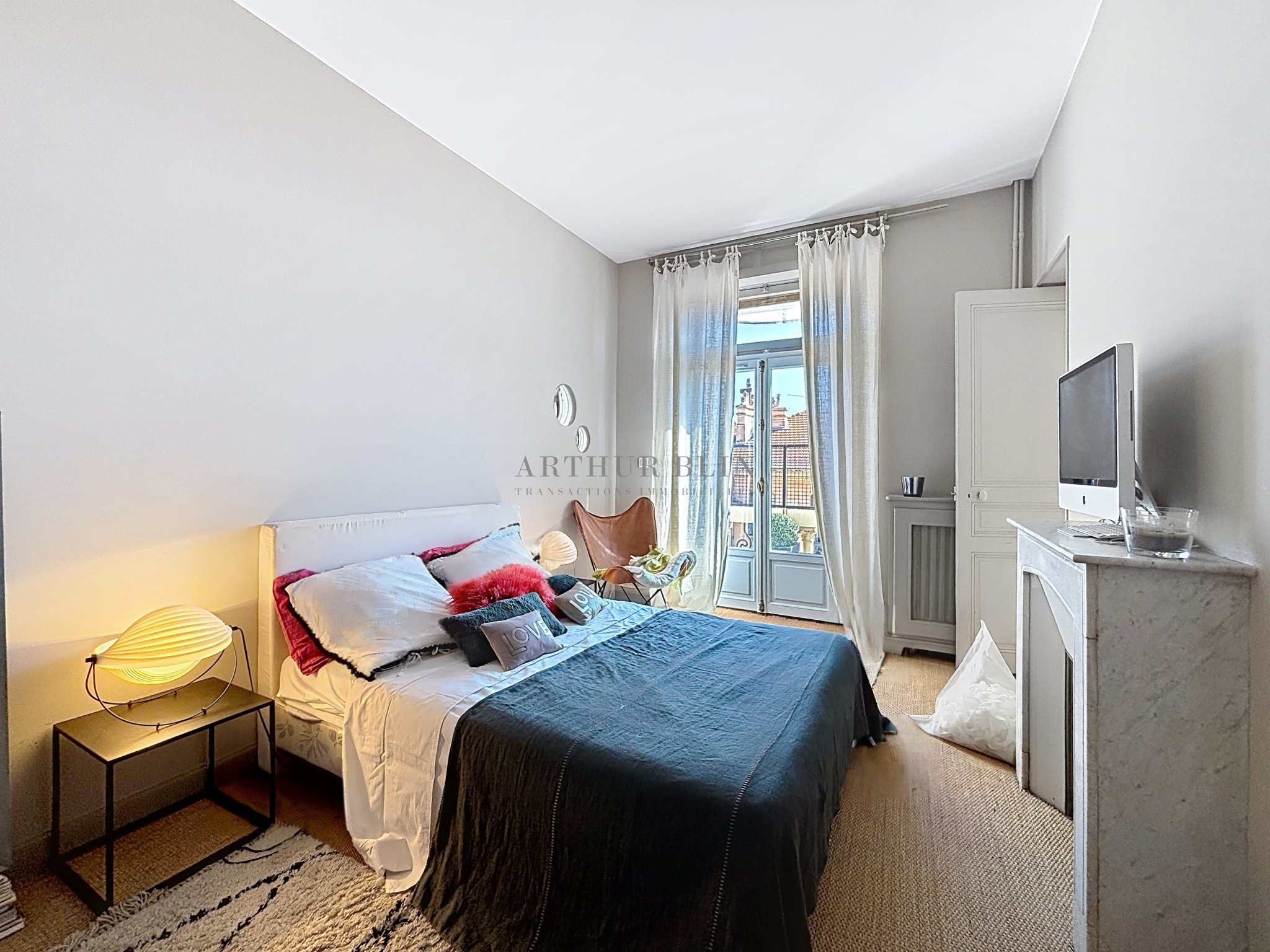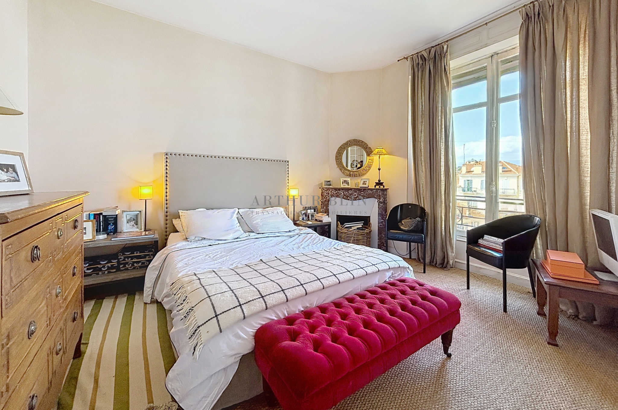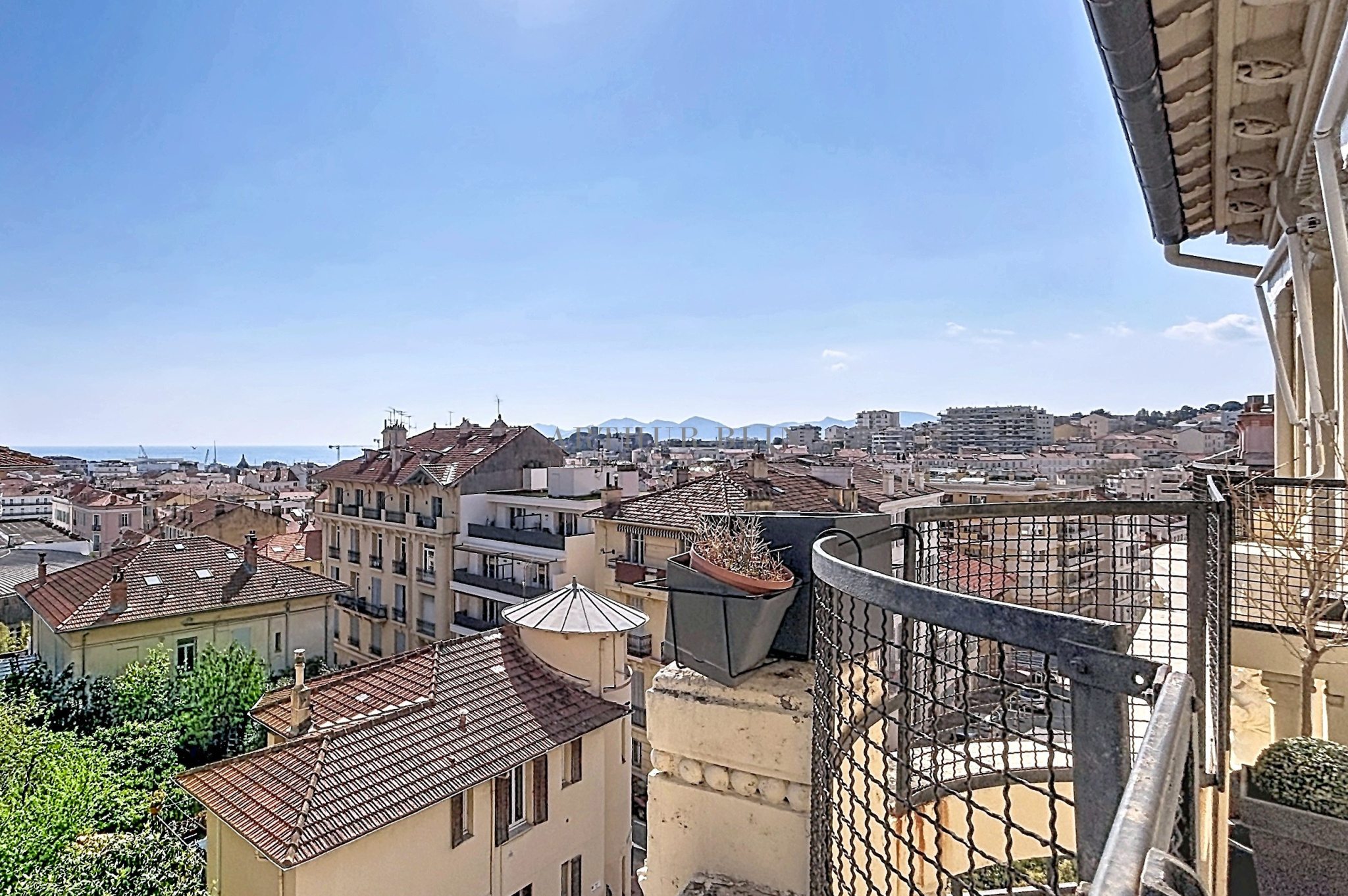A Cannes, dans un quartier central proche de tout à pied, au calme d'une rue finissant en impasse bordée de beaux immeubles anciens et de villas bourgeoises, en dernier étage d'un bel immeuble fin XIXè aus belles façades, vaste appartement familial d'envrion 100 m2 aux beaux volumes lumineux. L'entrée dessert le double-living, salon - salle-à-manger ouvrant sur balcons exposés au Sud, une chambre avec balcon exposés Sud, une cuisine aménagée, deux chambres à l'arrière à la vue dégagée sur la ville et les collines, une salle de bains, WC indépendants. Parquet au sol, cheminées dans le double-living. Les combles sont privatifs à l'appartement et pourraient être aménagés. Une grande cave (16 m2). Parking public à immédiate proximité avec faculté d'abonnement. Les informations sur les risques auxquels ce bien est exposé sont disponibles sur le site Géorisques