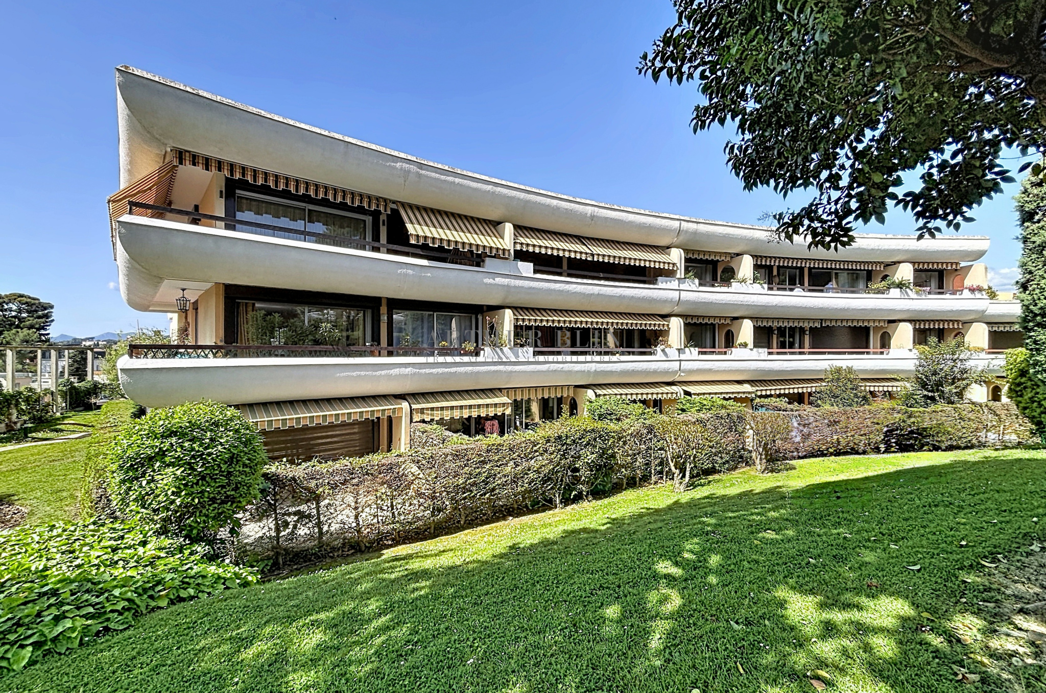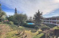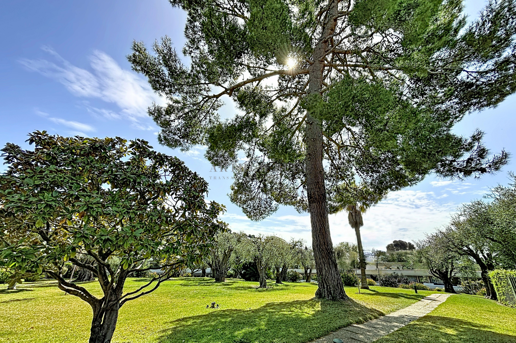 Au Cannet, en limite exacte de Cannes, dans la résidence recherché du Penh Chaï, bel appartement d'angle d'une superficie d'env. 82 m2 et à la triple exposition Sud - Est - Ouest, donnant sur les jardins. Hall d'entrée, living d'angle (env. 38 m2) et chambre principale avec salle d'eau attenante, cuisine et seconde chambre. WC indépendants. Toutes les pièces ouvrent sur les terrasses. Un parking dans le garage de la résidence et une cave. Bus devant la résidence, commerces, écoles à pied.